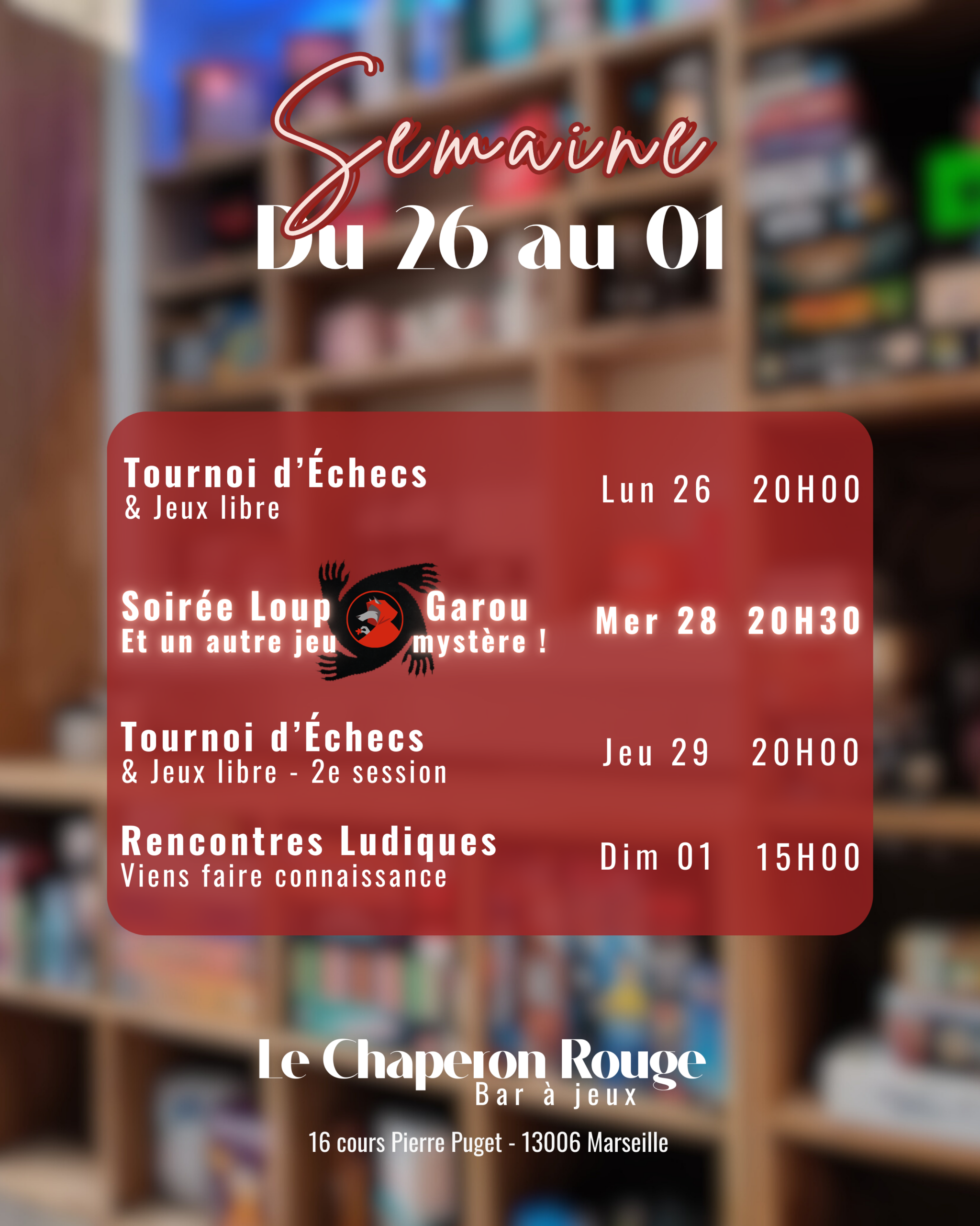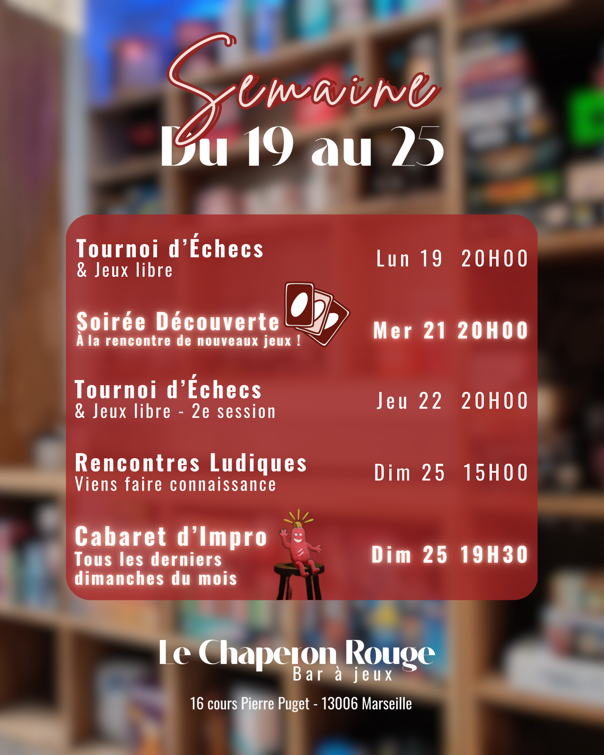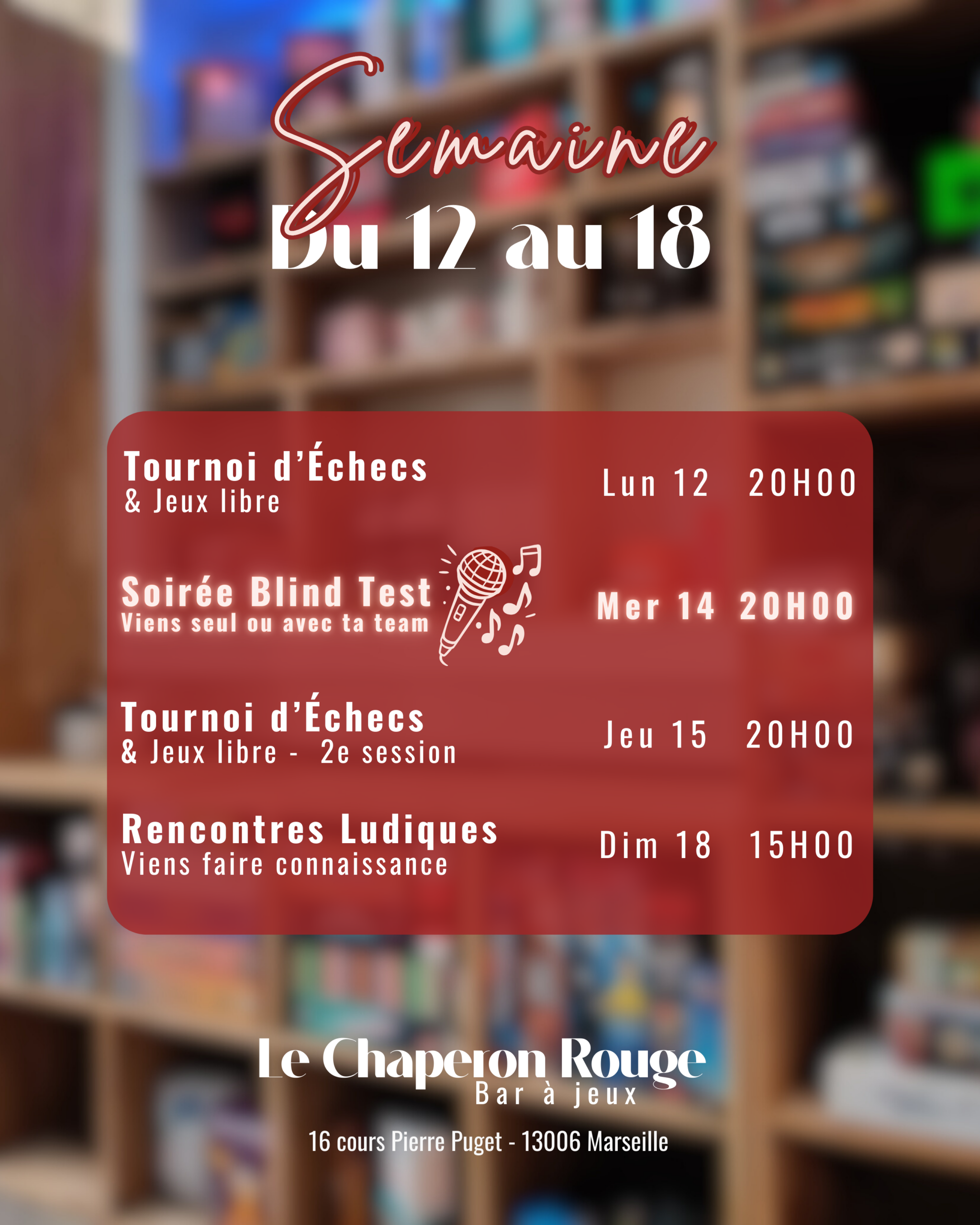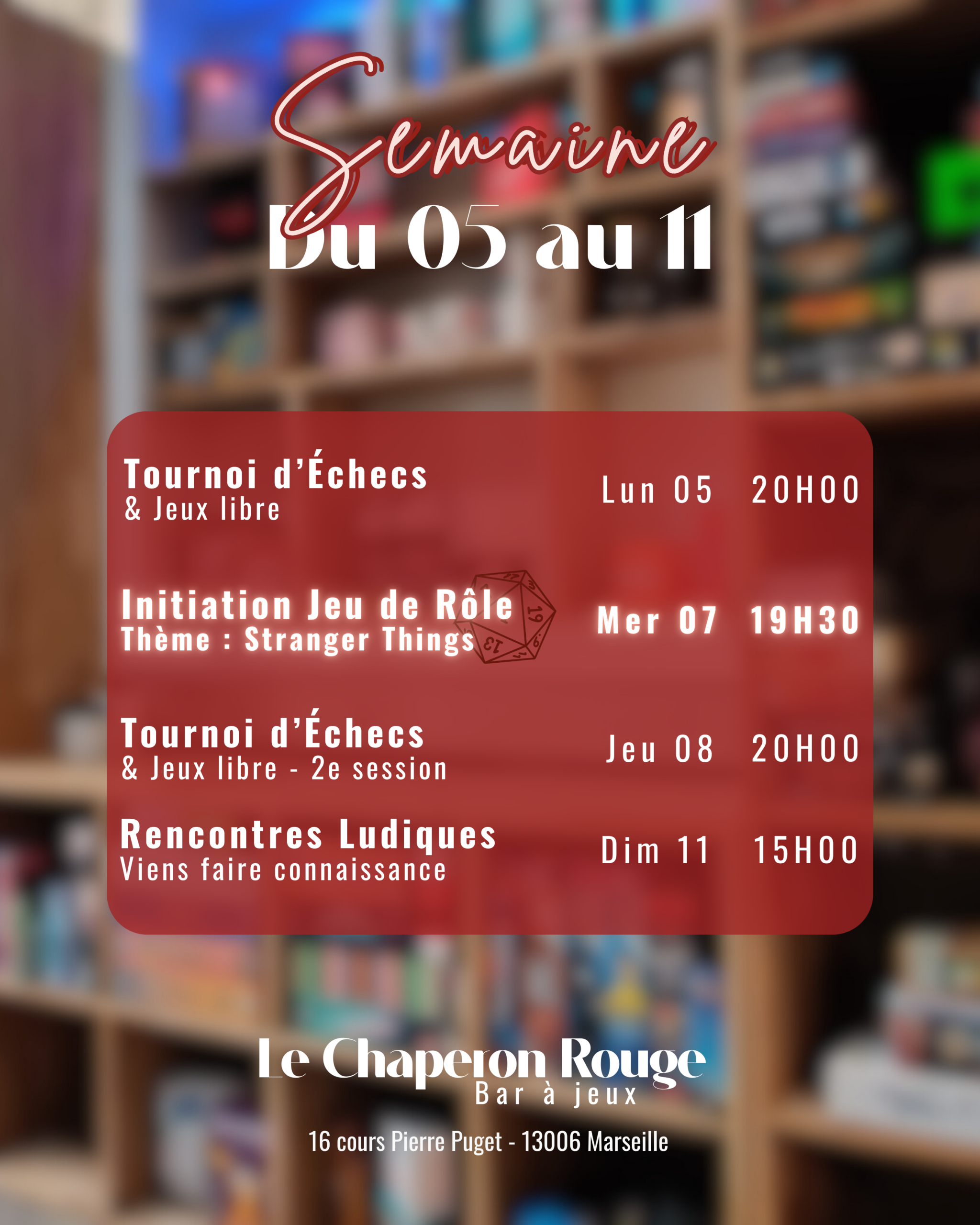 Ouvert du lundi au dimanche, nous vous proposons une sélection de plus de 700 jeux (et des animateurs qui vous expliquent les règles❤️), un billard, une belle carte de boissons, cocktails créa’, tapas, mais aussi plein d’évènements, nous sommes certain que vous passerez un bon moment!